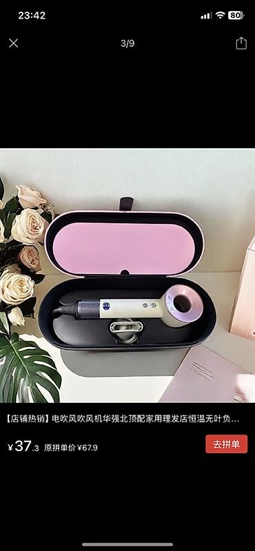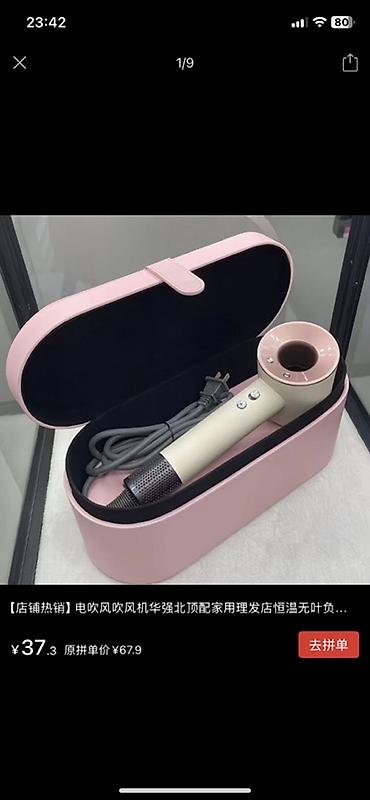 Стильный фен-стайлер в нежном розовом цвете с удобным футляром для хранения. Идеально подходит для быстрой сушки и укладки волос дома.