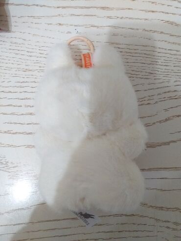 - Персонаж в белом пушистом костюме с ушками, улыбающееся лицо с клыками