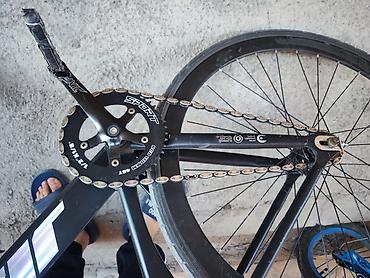 - Трансмиссия: одинарная звезда с цепью, фиксированная втулка, тормозов нет (трек/фиксед формат).