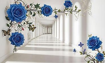 3D фотопанно/фрески для стен с объемными цветами и мраморными фонами. Описание: - Серия декоративных панелей с эффектом 3D: белые и голубые цветы, золотые элементы, перламутровые акценты, ветви с ...