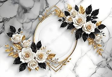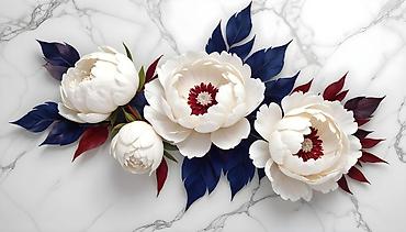 3D фотопанно/фрески для стен с объемными цветами и мраморными фонами