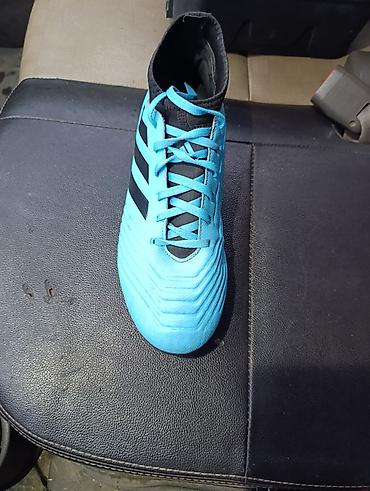 Футбольные бутсы Adidas Predator (с шнуровкой), цвет голубой/черный.