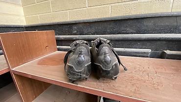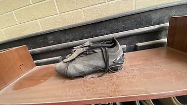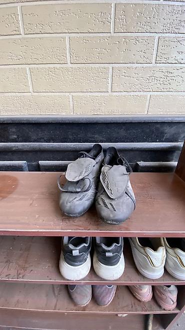 Подойдут для тренировки и матчей на открытых полях. Размер ориентировочно средний (смотрите по фото с полки для масштаба). Цвет: черный с серыми вставками.