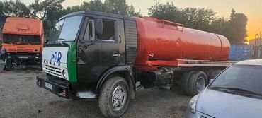 КАМАЗ вакуумная/ассенизаторская машина - База: КАМАЗ, кабина оранжевого цвета. - Колесная формула: 6×4 (две задние оси ведущие). - Надстройка: цистерна-резервуар цилиндрической формы для перекачки...