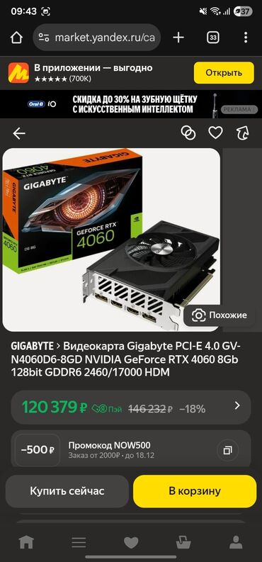 Видеокарта, Gigabyte, GeForce RTX, 8 ГБ, Для ПК