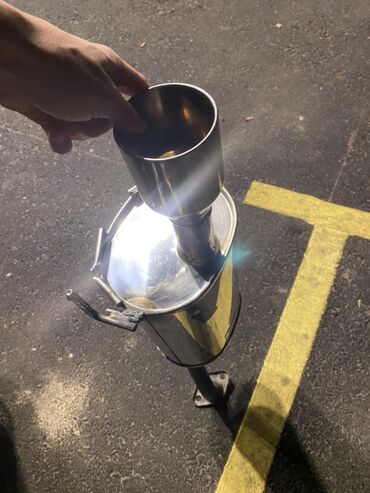 - Насадка: конусная, с прямоточной внутренней геометрией; съемный/устанавливаемый внутрь стакан-глушитель (даунпайп-адаптер/вставка для снижения громкости на фото).