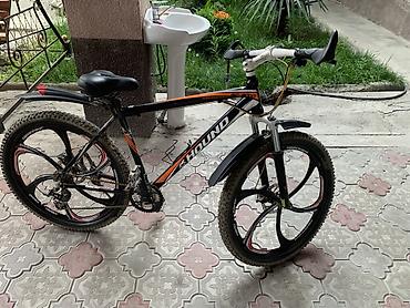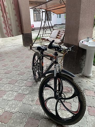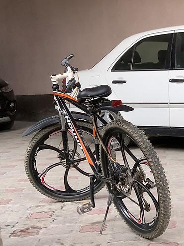 - Колёса: 26" с литыми магниевыми ободами (5–спицевые), покрышки внедорожного типа с выраженным протектором.