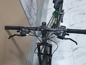 - Рама: алюминиевая, геометрия хардтейл, внутренняя/аккуратная прокладка тросов, окраска серо-черная с салатовыми вставками TIANS