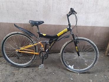 Горный велосипед с задней подвеской - Рама: стальная, полусогнутая геометрия с центральным амортизатором (двухподвес). - Колеса: 26", покрышки с выраженным протектором для бездорожья. - Тормоза: о...