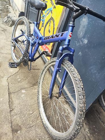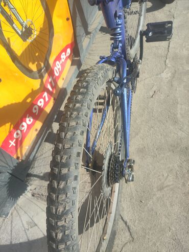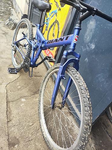 Горный велосипед с двумя амортизаторами (двухподвес), стальная рама, цвет — синий.