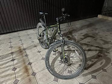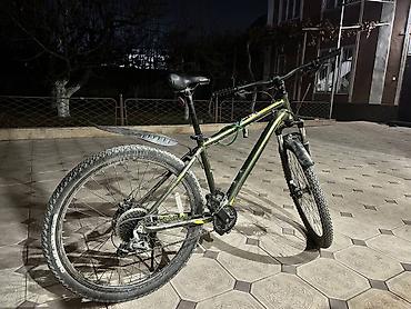 - Рама хардтейл, алюминиевая, геометрия для кросс-кантри. Цвет: тёмно‑зелёный/чёрный с салатовыми акцентами.