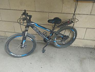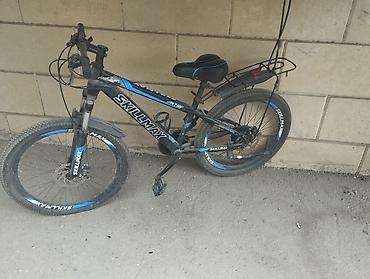 - Рама: стальная, геометрия MTB, окраска чёрно‑синяя с фирменными логотипами SKILLMAX