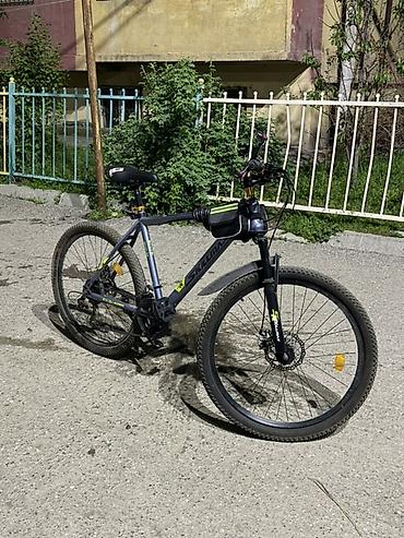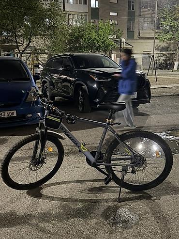 Отлично подходит для ежедневных поездок по городу и выездов на природу. Сбалансированная геометрия, надежные дисковые тормоза и практичные аксессуары уже установлены. Цвет — серый с черными и салатовыми акцентами.
