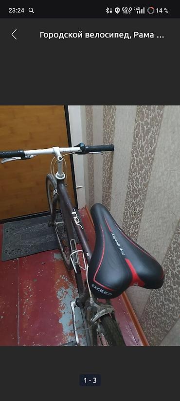 Городской велосипед с лёгкой рамой и прямым рулём.