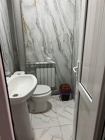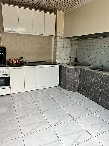 - Кухня-столовая: белый гарнитур с верхними и нижними шкафами, рабочая поверхность, газовая плита с духовкой, мойка, кафельный фартук и полы из керамогранита. Предусмотрена зона под большие казаны/плиты.