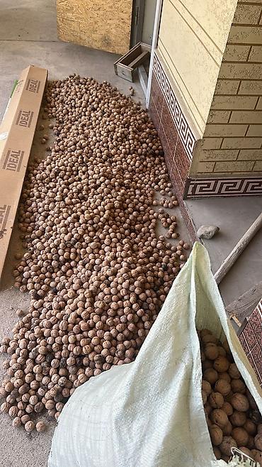 Грецкие орехи в скорлупе Дата на фото: 29.09.2025. Собрано в с.Арашан, урожай 2025 года 4 сорта в одном мешке цена 100 сом/кг оптом цена 125 сом/ 1 кг