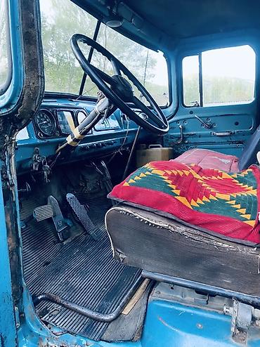 - Кабина на 3 места, простая панель приборов с круглыми шкалами, механические стеклоподъёмники