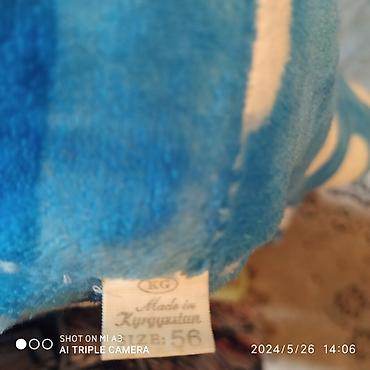 Халат новый с капюшоном,накладными карманами и поясом,нежно голубого цвета,легкий,теплый,размер54,длина 127.По цене2000сом,