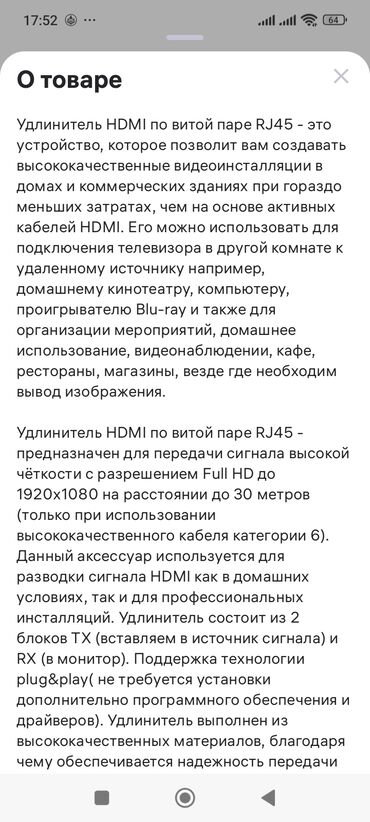 Hd video processing hdmi extender Hdmi extender по витой паре Продам