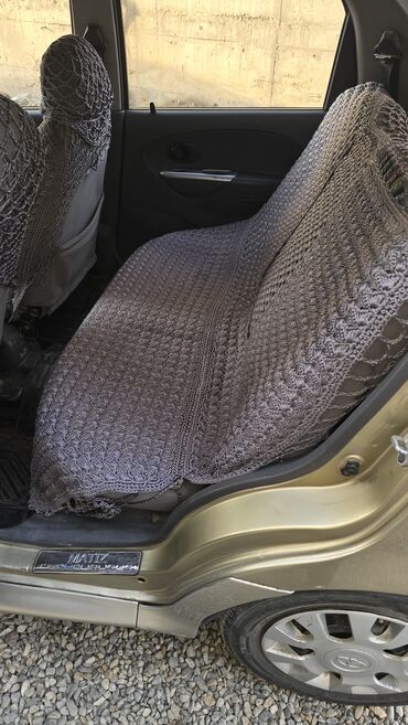 - Интерьер с серыми вязаными чехлами на все сиденья, оплетка руля.