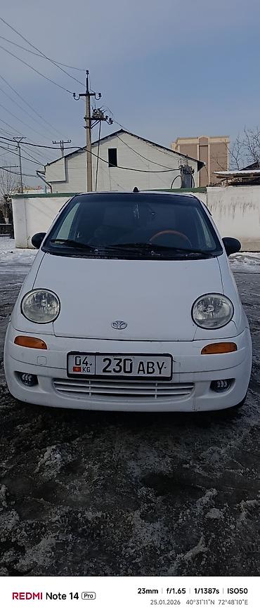 Daewoo Matiz, белый хэтчбек 5 дверей, на кыргызских номерах 04 KG 230 ABY.