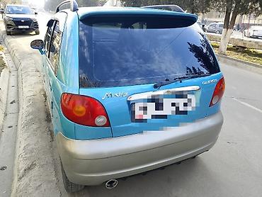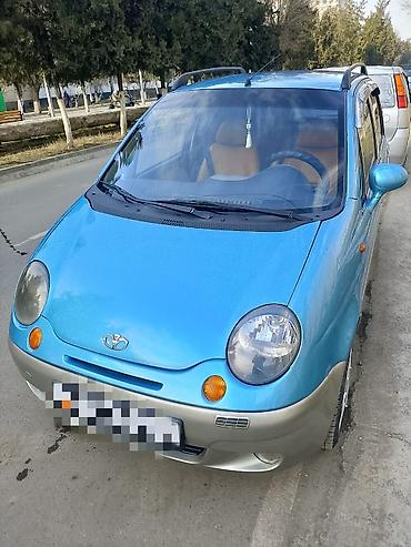 Daewoo Matiz, городской хэтчбек голубого цвета с серебристым обвесом.