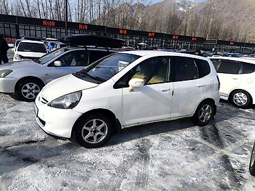 Срочно !!!! Honda Fit (правый руль), белый хэтчбек. 2003г Кузов и дизайн: - Белый цвет, тонировка задних стёкол зимняя резина Автомобиль на киргизских номерах (01 KG на фото).