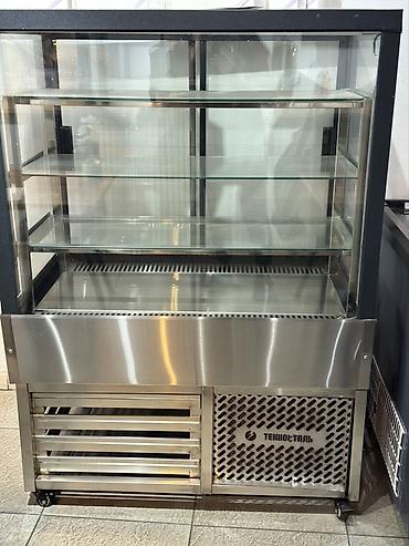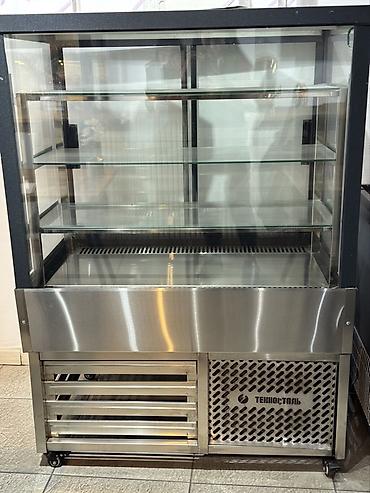 Габариты и температурный режим на фотографии не указаны; витрина стандартного среднего формата с тремя уровнями выкладки и встроенным холодильным модулем. Бренд: Техносталь.