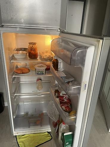 - Внутри: 3 стеклянные полки в холодильном отделении, большой прозрачный ящик для овощей и фруктов, полки на дверце для бутылок/соусов/яиц