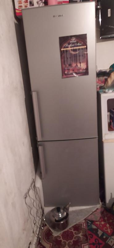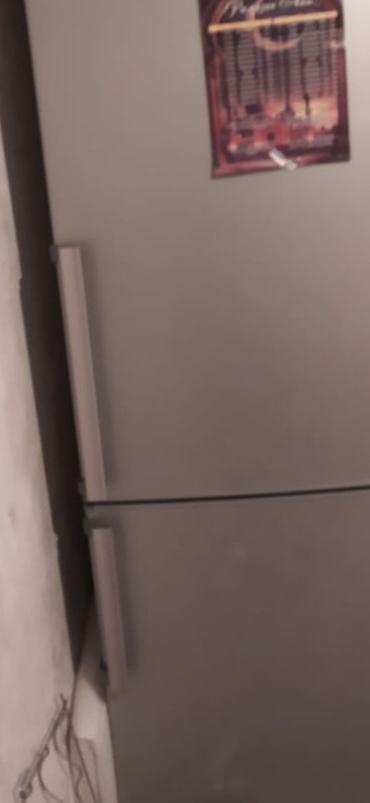 Холодильник двухкамерный, серебристый (серый металлик), с нижней морозильной камерой.