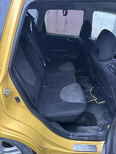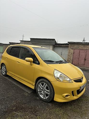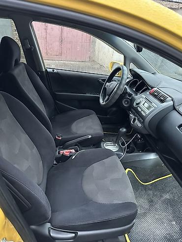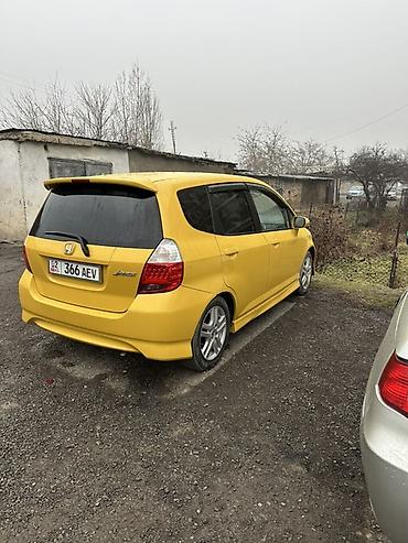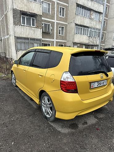 Honda Fit/Jazz (5‑дверный хэтчбек), окраска — ярко‑желтая. Компактный городской автомобиль с экономичным бензиновым двигателем и автоматической коробкой (вариатор/АКПП — селектор на тоннеле). Передний привод.