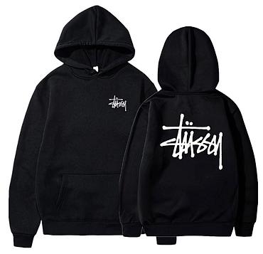 - Контрастный фирменный принт Stüssy: небольшой на груди и крупный на спине.