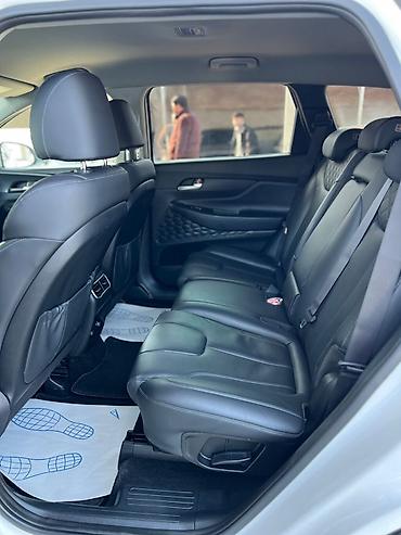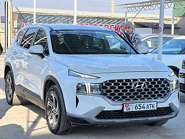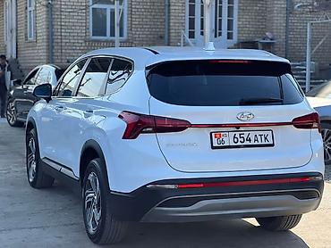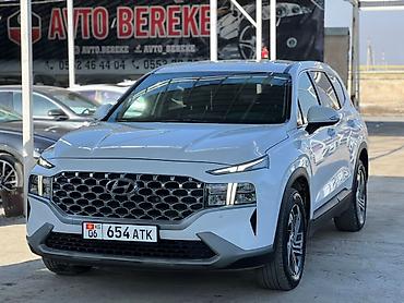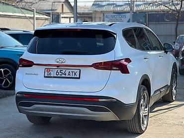Номерной знак: KG 654 ATK. Модель на фото — актуальная генерация Santa Fe с фирменной решёткой и светодиодной оптикой. Отлично подходит для семьи и дальних поездок: тихий салон, много места на втором ряду и развитая мультимедиа.