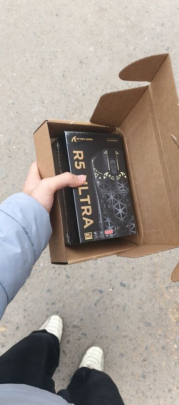 - В комплекте: мышь, приёмник 2.4 ГГц, кабель USB-C (см. на фото упаковку R5 Ultra)