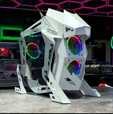 - Дизайн и подсветка: агрессивная футуристическая форма, акцент на RGB‑подсветке вентиляторов и внутренних компонентов.