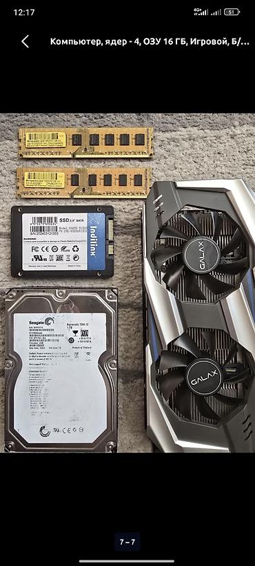 В комплекте: системный блок в сборе с установленными компонентами, SSD 512 ГБ и HDD 1 ТБ, видеокарта GALAX, 16 ГБ DDR3, БП 600 Вт.