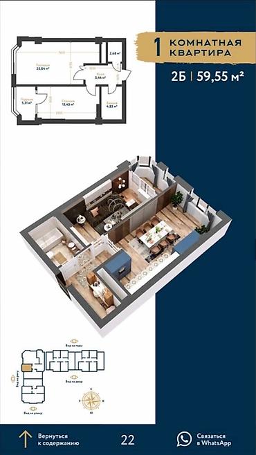 2‑комнатная квартира, планировка Д‑3, ЖК Amanat City Общая площадь: 74,20 м² Этаж: 14 Состав помещений (по плану): - Холл — 10,44 м² - Кухня‑гостиная — 23,58 м² - Спальня 1 — 15,43 м² - Лоджия — 1...