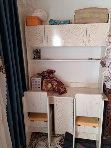 Дополнительно на фото — двухместный письменный стол с надстройкой: