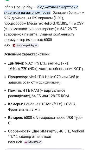 Infinix Hot 12 Play, 64 ГБ, 2 SIM