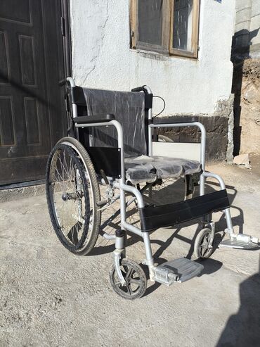 - Большие задние колеса с пневматическими шинами и ручными ободами для самостоятельного движения пользователя; передние поворотные колеса для маневренности.