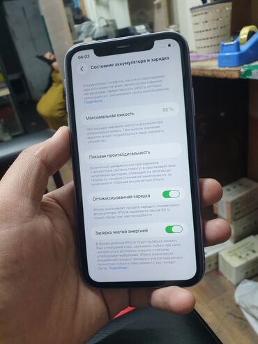 - Аккумулятор: максимальная ёмкость 90%, включены «Оптимизированная зарядка» и «Зарядка чистой энергии»