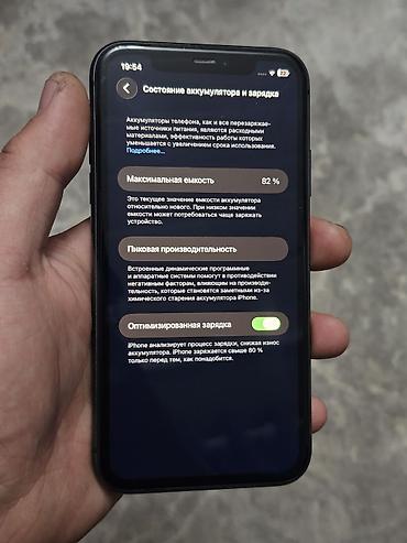 - Показатель «Состояние аккумулятора» на фото: максимальная емкость 82%, включена «Оптимизированная зарядка».