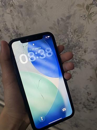 IPhone 11, память 64 АКБ 100 экран менялся черный цвет, корпус из стекла и алюминия. Экран 6.1" Liquid Retina HD (IPS), True Tone, широкая цветовая гамма (P3), Haptic Touch. На дисплее видны трещины; тач-скрин и подсветка работают, интерфейс откликается.