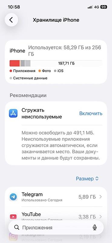 - Память: 256 ГБ (скрин «Хранилище iPhone»)
