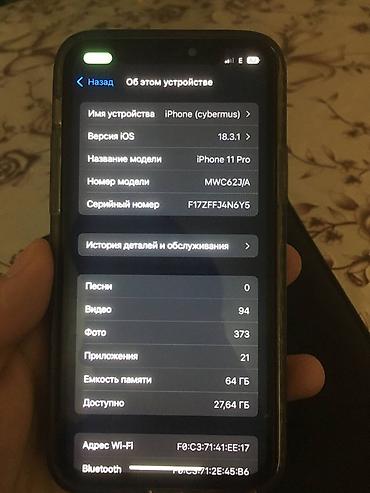 - Модель: iPhone 11 Pro (номер модели MWC62J/A)