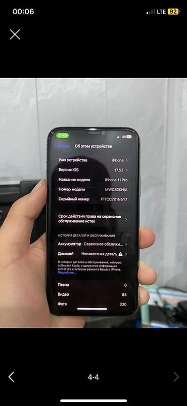 - На экране «Об этом устройстве» отображается: модель iPhone 11 Pro, номер модели MWC82KH/A, серийный номер F17C C7X1N6Y7