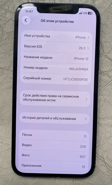 - Состояние аккумулятора в настройках: максимальная ёмкость 79% (в системе отображается уведомление о необходимости сервисной замены для восстановления полной ёмкости)