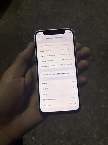 IPhone 12 Mini 🔥 📍Память - 64гб 📍АКБ - 82% 📍Face ID, True Tone ✅ 📍Состояние - Идеальное 💸Цена - 12000 сом 📍Отправляем по всем регионам КР🇰🇬 📍Trade In- Обмен есть 🤝 Для подробной информации ; ...