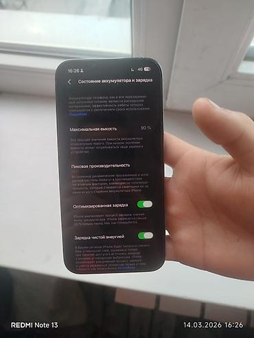 - Аккумулятор: максимальная ёмкость 90% (видно на скриншоте раздела «Состояние аккумулятора и зарядка»), включены функции «Оптимизированная зарядка» и «Зарядка чистой энергией».