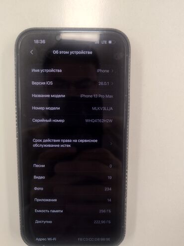 IPhone 13 Pro, 256 ГБ, цвет Sierra Blue Характеристики по скриншотам: - Модель: iPhone 13 Pro (MLVP3KH/A) - iOS: 18.6.2 - Память: 256 ГБ, доступно ~133,9 ГБ - Аккумулятор: максимальная ёмкость 88%...